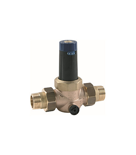 Syr - Sasserath Druckminderer 0315.15.056mit beidseitigen VerschraubungenSchmutzfänger und beidseitigen Manometerstutzen G 1/4mit AusgangsdruckanzeigeDVGW-zugelassen und schallschutzgeprüft in Klasse 1Gehäuse aus RotgussEinbaumaße ohne Verschraubung wie D06Fmax. Betriebsdruck: 25 barmax. Betriebstemperatur: 30 °CAusgangsdruck: 15-6 bar (Werkseinstellung: 4 bar)Medium: WasserTrinkwasserPressluftneutrale nicht klebende Flüssigkeitenneutrale GaseEinbaulage: beliebigABP-Nr. DN 15-25 P-IX 7635/IDN 32 P-IX 7729/I ...