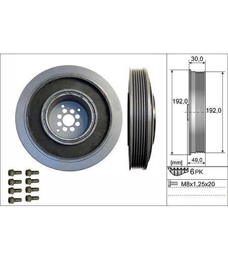 INA Riemenscheibensatz, Kurbelwelle Anzahl der Rillen:6 Service Information beachten nur in Verbindung mit:WHT 000 950 A nur in Verbindung mit:WHT 003 351 Außendurchmesser [mm]:192,0 mm Schwingung:mit Schwingungstilger Breite [mm]:48,0 mm , u.a. für Audi A7 (4GA, 4GF), 2967 cm³, 204 PS (150 kW), 11/2010 bis 3/2015, KBA-Nr: 0588AQTAudi A6 C7 (4G2, 4GC), 2967 cm³, 204 PS (150 kW), 11/2010 bis 9/2018, KBA-Nr: 0588ARBAudi A6 C7 (4G2, 4GC), 2967 cm³, 204 PS (150 kW), 3/2011 bis 9/2018, KBA-Nr: 0588ARCAudi A6 C7 (4G2, 4GC), 2967 cm³, 245 PS (180 kW), 3/2011 bis 9/2018, KBA-Nr: 0588ARDVW Touareg (7P5, 7P6), 2967 cm³, 204 PS (150 kW), 1/2010 bis 3/2018, KBA-Nr: 0603ASSAudi A7 (4GA, 4GF), 2967 cm³, 204 PS (150 kW), 12/2010 bis 3/2015, KBA-Nr: 0588ARSAudi Q7 (4LB), 2967 cm³, 224 PS (165 kW), 6/2009 bis 5/2012Audi A6 C7 (4G5, 4GD), 2967 cm³, 204 PS (150 kW), 5/2011 bis 9/2018, KBA-Nr: 0588AQSAudi A8 (4H2, 4H8, 4HC, 4HL), 2967 cm³, 204 PS (150 kW), 9/2011 bis 9/2013, KBA-Nr: 0588ARJAudi Q7 (4LB), 2967 cm³, 245 PS (180 kW), 5/2011 bis 8/2015, KBA-Nr: 0588ARQAudi A6 C6 (4F2), 2967 cm³, 225 PS (165 kW), 5/2004 bis 5/2006, KBA-Nr: 0588852Audi A8 (4E2, 4E8), 2967 cm³, 233 PS (171 kW), 8/2003 bis 7/2010, KBA-Nr: 0588843Audi A6 C6 (4F2), 2967 cm³, 211 PS (155 kW), 5/2004 bis 3/2011, KBA-Nr: 0588854Audi A4 B7 (8EC), 2967 cm³, 204 PS (150 kW), 11/2004 bis 6/2008, KBA-Nr: 0588867VW Phaeton (3D1, 3D2, 3D3, 3D4, 3D6, 3D7, 3D8, 3D9), 2967 cm³, 224 PS (165 kW), 9/2004 bis 5/2007, KBA-Nr: 0603763Audi A4 B7 (8ED), 2967 cm³, 204 PS (150 kW), 11/2004 bis 6/2008, KBA-Nr: 0588868Audi A6 C6 (4F2), 2698 cm³, 180 PS (132 kW), 11/2004 bis 10/2008, KBA-Nr: 0588876Audi A6 C6 (4F2), 2698 cm³, 163 PS (120 kW), 11/2004 bis 3/2011, KBA-Nr: 0588881Audi A6 C6 (4F5), 2698 cm³, 163 PS (120 kW), 3/2005 bis 8/2011, KBA-Nr: 0588ABPAudi A6 C6 (4F5), 2967 cm³, 225 PS (165 kW), 3/2005 bis 5/2006, KBA-Nr: 0588888Audi A6 C6 (4F5), 2967 cm³, 211 PS (155 kW), 3/2005 bis 8/2011, KBA-Nr: 0588892VW Touareg (7L6, 7L7, 7LA), 2967 cm³, 225 PS (165 kW), 11/2004 bis 5/2010, KBA-Nr: 0603775Audi A6 C6 (4F5), 2698 cm³, 180 PS (132 kW), 3/2005 bis 10/2008, KBA-Nr: 0588889Audi A6 C6 (4F5), 2698 cm³, 180 PS (132 kW), 11/2004 bis 10/2008, KBA-Nr: 0588904Audi A6 C6 (4F2), 2698 cm³, 180 PS (132 kW), 11/2004 bis 10/2008, KBA-Nr: 0588903Audi A8 (4E2, 4E8), 2967 cm³, 211 PS (155 kW), 11/2003 bis 7/2010, KBA-Nr: 0588847Audi Q7 (4LB), 2967 cm³, 233 PS (171 kW), 3/2006 bis 5/2008, KBA-Nr: 0588AEMAudi A4 B7 (8HE), 2967 cm³, 233 PS (171 kW), 1/2006 bis 3/2009, KBA-Nr: 0588AAJAudi A6 C6 (4F2), 2698 cm³, 163 PS (120 kW), 6/2005 bis 3/2011, KBA-Nr: 0588899Audi A6 C6 (4F5), 2698 cm³, 163 PS (120 kW), 6/2005 bis 8/2011, KBA-Nr: 0588900Audi A6 Allroad C6 (4FH), 2967 cm³, 233 PS (171 kW), 5/2006 bis 10/2008, KBA-Nr: 0588ABAAudi A6 Allroad C6 (4FH), 2698 cm³, 180 PS (132 kW), 3/2006 bis 10/2008, KBA-Nr: 0588ABOAudi A6 C6 (4F2), 2967 cm³, 233 PS (171 kW), 6/2006 bis 10/2008, KBA-Nr: 0588AASAudi A6 C6 (4F5), 2967 cm³, 233 PS (171 kW),... ...
