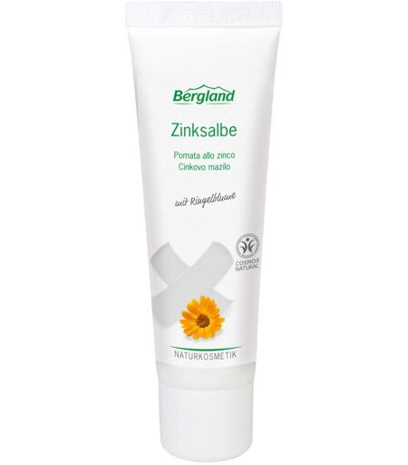 Anwendungsgebiet von Zinksalbe Bergland Zinksalbe mit Ringelblume - Sanfte Pflege für sensible HautDie Zinksalbe bietet wohltuende Unterstützung bei juckender oder gereizter Haut. Zink wirkt ausgleichend bei Hautunreinheiten und kann die Hautstruktur sichtbar verbessern. Die Kombination aus Ringelblumen-Extrakt, bekannt für seine regenerierenden Eigenschaften, und nährendem Mandelöl sorgt für ein gepflegtes, geschmeidiges Hautgefühl. Besonders sanft zur Babyhaut – ideal im Windelbereich.Zertifizierte Naturkosmetik.Wirkstoffe / Inhaltsstoffe / ZutatenZinksalbe enthält:Inhaltsstoffe: Wasser dem., Zinkoxid, Bio Sonnenblumen-Öl, Bio Sheabutter, pflanzliches Glycerin, Mandel-Öl, -Glyceride, Mono-, Di- und Tricitrate, mittelkettige Triglyceride, Glyceryl Monostearat, Fettalkohol, Stearinsäure, Glycerylcaprylat, Bisabolol, Ringelblumenblüten Extrakt, natürliches Vitamin E, Soja Extrakt, Palmetinsäure, Xanthan, Benzylalkohol, Sorbitan CaprylateGegenanzeigenBei bekannter Überempfindlichkeit gegen einzelne Inhaltsstoffe sollte Zinksalbe nicht angewendet werden.DosierungAnwendungsempfehlung von Zinksalbe:Tragen Sie die Salbe mehrmals täglich auf die betroffenen Hautstellen auf und massieren Sie sie sanft ein. Zinksalbe können in Ihrer Versandapotheke www.juvalis.de erworben werden. ...