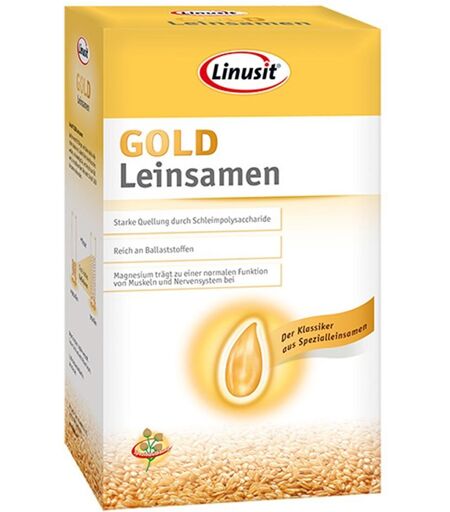 Anwendungsgebiet von Linusit Gold LeinsamenDie für Linusit Gold Leinsamen eingesetzten Samen sind eine Spezialzüchtung mit einem besonderen Anteil an gelbildenden Schleimpolysacchariden. Sie sind reich an Ballaststoffen und haben eine starke Quellfähigkeit. Linusit GOLD Leinsamen enthalten auch Magnesium. Magnesium trägt zu einer normalen Funktion von Muskeln und Nervensystem bei. Wirkstoffe / Inhaltsstoffe / ZutatenZutaten von Linusit Gold Leinsamen: Stark quellende Spezialleinsamen Nährwerte: Nährwerte pro 100 g NRV in % Energie 2089 kJ Energie 506 kcal Fett 39 g gesättigte Fettsäuren 4,0 g Kohlenhydrate 0,6 g Zucker 0,6 g Ballaststoffe 27 g Schleim-Polysaccharide 10 g Eiweiß 26 g Salz 0,07 g Calcium 206 mg (26 %) Magnesium 323 mg (86 %) Die in Klammern angegebenen Prozentsätze entsprechen dem Anteil an der ReferenzmengeGegenanzeigenBei bekannter Überempfindlichkeit gegenüber einem der oben genannten Wirkstoffe sollte das Produkt nicht verwendet werden.DosierungVerzehrempfehlung von Linusit Gold Leinsamen: 3 x täglich möglichst vor oder zum Essen verzehren. Bitte achten Sie auf eine reichliche Flüssigkeitszufuhr pro Tag. Als pure Variante: 1. Je 15 g GOLD Leinsamen (2 Esslöffel). Für Kinder von 6-12 Jahren nur 1 Esslöffel. 2. Möglichst unzerkaut verzehren. 3. 1-2 Gläser Wasser (mindestens 15 ml) nachtrinken. Als Leinsamenbrei: 1. 15 g GOLD Leinsamen (2 Esslöffel) in ca. 400 ml Wasser einrühren und kurz aufkochen. 2. Ab und zu umrühren und bis zu 1 Stunde quellen lassen. 3. Anschließend mit Samen verzehren. Als Leinsamengel: 1. 15 g GOLD Leinsamen (2 Esslöffel) mittels Teigrolle oder Ähnlichem zunächst leicht anquetschen (nicht schroten!). 2. In ca. 400 ml Wasser einrühren und kurz aufkochen. 3. Ab und zu umrühren und bis zu 1 Stunde que ...