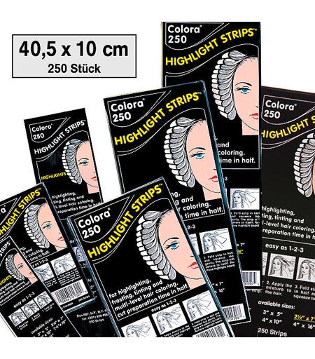 Spezial-Strähnenpapier in 7 Größen. Gebrauchsfertig zum Färben, Tönen oder Blondieren von Haarsträhnen. Für ansatznahe Färbung und individuelle Strähnen. 250 zugeschnittene Spezialblätter für unterschiedliche Haarlängen. ...
