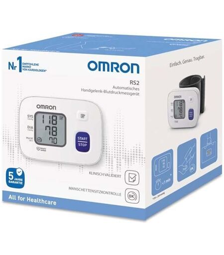 OMRON RS2 Das neue OMRON RS2 macht die Blutdruckmessung ganz besonders einfach: Das kompakte Handgelenk-Blutdruckmessgerät ist besonders leicht zu bedienen und bietet viele nützliche Funktionen. So kann es zum Beispiel mit der Manschettensitzkontrolle Anwendungsfehlern vorbeugen. Falls der Bluthochdruck die empfohlenen Werte überschreitet, leuchtet eine Anzeige auf – so dass man seine Werte immer im Blick hat. Eigenschaften: Manschettensitzkontrolle 30 Speicherplätze Bluthochdruckindikator Inhalt der Verpackung Blutdruckmessgerät Aufbewahrungsbox 2 AAA Alkali Batterien Gebrauchsanweisung ...