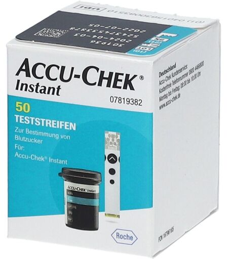 Accu Chek Instant Teststreifen Zur Bestimmung von Blutzucker Zur Selbstanwendung geeignet Für folgende Blutzuckermessgeräte geeginet: Accu-Check® Instant Accu-Check® Instant S ...
