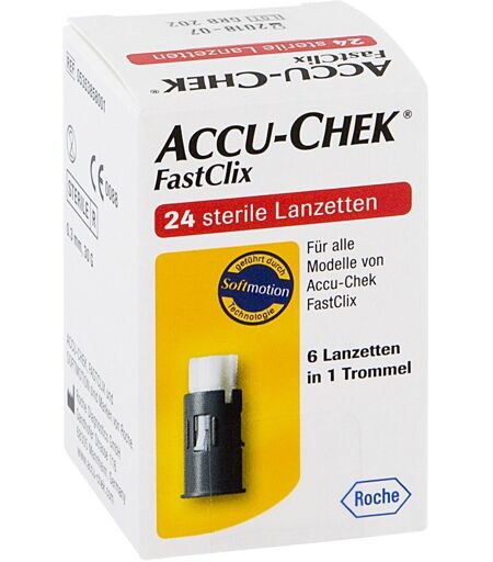 Anwendungsgebiet von Accu Chek Fastclix LanzettenAccu Chek Fastclix Lanzetten helfen bei der einfachen und sicheren Blutzuckermessung.Wirkungsweise von Accu Chek Fastclix LanzettenAccu Chek Fastclix Lanzetten enthalten je sechs Lanzetten in einer Trommel. Ein einzelner Wechsel der Lanzetten ist nicht nötig, da die Trommel immer als Ganzes ausgewechselt wird. Somit erfolgt kein Kontakt mit den Lanzetten und das Verletzungsrisiko wird minimiert. Zudem kann die Einstechtiefe von Accu Chek Fastclix Lanzetten individuell eingestellt werden. Anschließend braucht es nur einen Klick mit der Stechhilfe und der Blutzucker ist gemessen. Accu Chek Fastclix Lanzetten ist ein einfaches und sicheres Hilfsmittel zur Blutzuckermessung.DosierungAnwendungsempfehlung von Accu Chek Fastclix Lanzetten: Sie können mit Accu Chek Fastclix Lanzetten gemäß den Hinweisen in der beiliegenden Anwendungsanleitung Ihren Blutzucker messen. Accu Chek Fastclix Lanzetten sind hierbei für die Stechhilfe von Accu-Chek FastClix geeignet. Accu Chek Fastclix Lanzetten können in Ihrer Versandapotheke www.juvalis.de erworben werden. ...