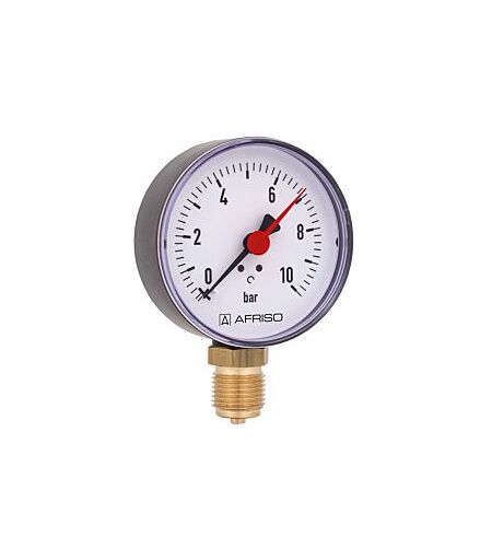 Afriso Manometer 0-10 bar, senkrecht 63564 Gehäuse 80mm Durchmesser, 1/2" Anschluss