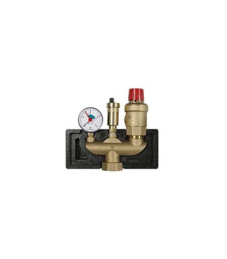 Afriso Kesselsicherungsgruppe 77627für geschlossene Heizungsanlagen nach EN 12828komplett fest montierte und auf Dichtheit geprüfte Kesselsicherungsgruppebestehend aus Armaturenträger als KreuzstückHeizungsmanometer zur Anzeige des AnlagendruckesSchnellentlüfter mit Aquastop und Membran-Sicherheitsventil MSmit selbstdichtendem Montageventil für den einfachen Austausch des Schnellentlüfterdie Isolation dient gleichzeitig als sichere TransportverpackungTemperatureinsatzbereich max 120 °C230 x 190 x 105 mmIsolation Polypropylen EPPArmaturenträger aus MessingMembran-Sicherheitsventil aus Messing (Dichtung PTFE-Dichtring verdrehbarAnsprechdruck 3 bar)Anzeigebereich 0/4 barØ 63 mm-G 1/4 RadSchnellentlüfter Eingang G 3/8Nenndruck 12 bar ...