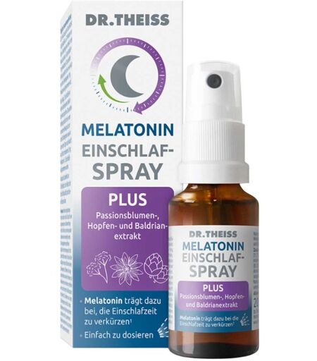 Anwendungsgebiet von DR. THEISS Melatonin Einschlaf-Spray PLUSDas DR. THEISS Melatonin Einschlaf-Spray PLUS vereint Melatonin, ein Hormon, das maßgeblich am Schlaf-Wach-Rhythmus beteiligt ist, mit ausgewählten beruhigenden Pflanzenextrakten aus Hopfen, Baldrian und Passionsblume. Es wurde entwickelt, um die Einschlafzeit zu verkürzen* und das nächtliche Einschlafritual auf natürliche Weise zu begleiten. Die bewährte Kombination aus Melatonin sowie den beruhigenden Extrakten aus Hopfen, Baldrian und Passionsblume kann nicht nur das Einschlafen erleichtern*, sondern unterstützt auch das nächtliche Durchschlafen**, was insgesamt zu einer erholsameren Nachtruhe beitragen kann.*Melatonin trägt dazu bei, die Einschlafzeit zu verkürzen.**Baldrian hilft den natürlichen Schlaf aufrechtzuerhaltenWirkstoffe / Inhaltsstoffe / ZutatenDR. THEISS Melatonin Einschlaf-Spray PLUS enthält: Zutaten: Wasser Stabilisator: Glycerin Baldrianwurzelextrakt (16,7 %) Ethanol Aroma Passionsblumenkrautextrakt (1,7 %) Hopfenextrakt (1,7 %) Melatonin (0,17 %) Säuerungsmittel: Citronensäure Konservierungsstoff: Kaliumsorbat PfefferminzölGegenanzeigenBei bekannter Überempfindlichkeit gegenüber einen der oben genannten Inhaltsstoffe sollte das Produkt nicht angewendet werden.DosierungVerzehrempfehlung von DR. THEISS Melatonin Einschlaf-Spray PLUS: Zur Verkürzung der Einschlafzeit:4 Sprühstöße ca. 30 Minuten vor dem Schlafengehen direkt in den Mund sprühen. (4 Sprühstöße = 1 mg Melatonin). Die positive Wirkung stellt sich ein, wenn kurz vor dem Schlafengehen 1 mg Melatonin aufgenommen wird. Bei Jetlag: 2 Sprühstöße vor dem Schlafengehen direkt in den Mund sprühen. Die positive Wirkung stellt sich ein, wenn am ersten Reisetag kurz vor dem Schlafengehen sowie an den ersten Tagen nach Ankunft am Zielort mindestens 0,5 mg Melatonin (= 2 Sprühstöße) aufgenommen werden.HinweiseNahrungsergänzungsmittel sollten ni ...