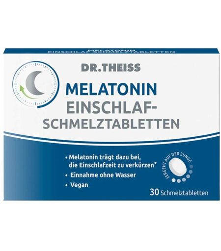 Anwendungsgebiet von DR. THEISS Melatonin Einschlaf-SchmelztablettenDR. THEISS Melatonin Einschlaf-Schmelztabletten -bei Schlafstörungen, Ermüdung und Stress.Das enthaltene Melatonin trägt dazu bei, die Einschlafzeit zu verkürzen.Wirkstoffe / Inhaltsstoffe / ZutatenDR. THEISS Melatonin Einschlaf-Schmelztabletten enthält: Zutaten: Süßungsmittel: Mannit Füllstoff : Mikrokristalline Cellulose Maisstärke Aroma Trennmittel: Magnesiumsalze der Speisefettsäuren Melatonin (0,39 %).GegenanzeigenBei bekannter Überempfindlichkeit gegenüber einem der oben genannten Inhaltsstoffe sollte das Produkt nicht verwendet werden. DosierungVerzehrempfehlung von DR. THEISS Melatonin Einschlaf-Schmelztabletten: 1 Schmelztablette, ca. 30 Minuten vor dem Schlafengehen ohne Wasser einnehmen und auf der Zunge zergehen lassen. Absolute Dunkelheit am Schlafplatz ist ein zusätzlicher Faktor, der die Schlafqualität positiv beeinflussen kann.Information Die Dr. Theiss Melatonin Einschlaf-Schmelztabletten bieten eine bewährte Unterstützung zur Förderung eines erholsamen Schlafs. Hauptbestandteil der Tabletten ist das natürliche Hormon Melatonin, das eine zentrale Rolle in unserem Schlaf-Wach-Rhythmus spielt. Wir wissen: Ein erholsamer Schlaf bildet die Grundlage für einen guten Start in den Tag. Stressige Lebensphasen, Schicht- und Nachtarbeit oder längere Flugreisen können zu Schlafproblemen führen. Entwickelt wurden diese Schmelztabletten, um die Einschlafzeit zu verkürzen* und das Schlafritual zu unterstützen. Die Dr. Theiss Melatonin Einschlaf-Schmelztabletten zergehen sanft auf der Zunge und ermöglichen eine Einnahme ohne Wasser. Bereits eine Schmelztablette ca. 30 Minuten vor dem Schlafengehen kann helfen, die Einschlafzeit zu verkürzen. Dabei sind sie nicht nur vegan, sondern auch laktosefrei, zuckerfrei und alkoholfrei. Die Schmelztabletten sind außerdem eine wertvolle ...