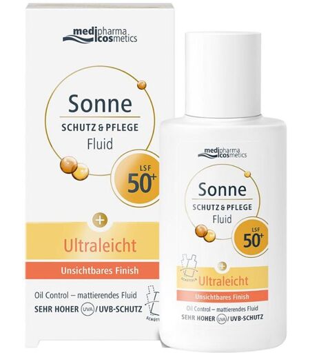 Augenkontakt vermeiden. Mehrfach auftragen, um den Lichtschutz aufrechtzuerhalten, insbesondere nach dem Aufenthalt im Wasser, Abtrocknen oder Schwitzen.InformationSonne Schutz & Pflege Fluid Ultraleicht Lsf 50+: Kombiniert zuverlässigen Sonnenschutz und intensive Feuchtigkeit mit mattem Finish
