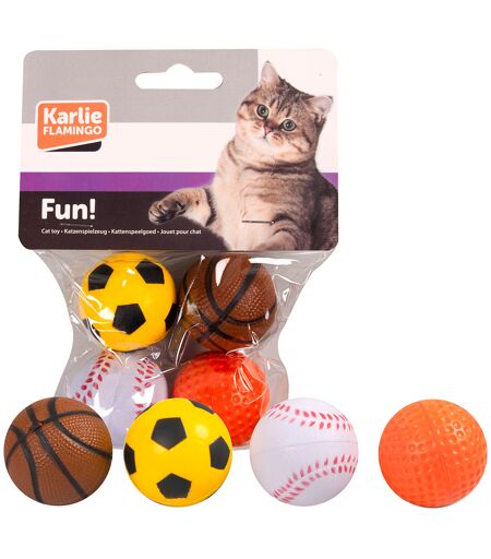 Bei so viel Abwechslung hat Langeweile keine Chance! Das Karlie Katzenspielzeug Moosgummiball stattet Sie gleich mit vier verschiedenen Bällen in unterschiedlichen Härtegraden für Ihre Katze aus, sodass für jede Menge Spielspaß gesorgt ist. Die Bällchen sind aus weichem Moosgummi gefertigt und punkten mit einem extra geringen Gewicht – perfekt zum Jagen und Fangen. Die Spielbälle aus dem Set Karlie Katzenspielzeug Moosgummiball sind im lustigen Sportball-Design gehalten und als Basketball, Golfball, Fußball und Baseball gestaltet. Sie rollen schnell, lassen sich leicht werfen oder anschubsen und springen gut – so wird die körperliche Aktivität Ihrer Samtpfote auf spielerische Art gefördert. Karlie Katzenspielzeug Moosgummiball im Überblick: Lustige Spielbälle für Katzen Aus weichem Moosgummi: sehr leicht, springen gut, unterschiedlich bissfest, schonend zum Gaumen Im Sport-Design: Basketball, Fußball, Baseball, Golf – für jeden etwas dabei Praktischer 4er-Pack: sorgt für Abwechslung, für Mehrkatzenhaushalte geeignet Perfekt für ausgiebige Jagdspiele: jagen, fangen, springen, fördert körperliche Betätigung Ihrer Katze Farbe: braun / gelb / weiß / orange Material: Moosgummi Maße: je ca. Ø 4 cm Hinweis: Wie bei jedem anderen Produkt sollten Sie Ihr Tier bei der Beschäftigung mit diesem Spielzeug beaufsichtigen. Bitte überprüfen Sie das Produkt regelmäßig auf Schäden und ersetzen Sie das Spielzeug, wenn es defekt ist oder wenn Teile verloren gehen, da ansonsten eine Verletzung des Tieres nicht ausgeschlossen werden kann. ...
