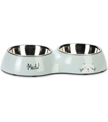 Das Karlie Diner Set Rana wird nicht nur Ihren vierbeinigen Liebling begeistern. Mit seinem niedlichen hellblauen Design mit Katzenkopf und dem Schriftzug „Meow“ ist der Doppelnapf auch für Katzeneltern ein richtiger Blickfang. Das gesamte Futternapf-Set ist spülmaschinenfest und die beiden herausnehmbaren Futterschalen sind aus rostfreiem Edelstahl und somit besonders hygienisch. An der Unterseite ist das Karlie Diner Set Rana mit Anti-Rutsch Füßen ausgestattet, die ein Verrutschen verhindert. Karlie Diner Set Rana im Überblick: Futternapfset für Katzen Vielseitig verwendbar: für Nass- und Trockenfutter als auch Wasser geeignet Hygienisch pflegeleicht: Näpfe aus leicht zu reinigendem, rostfreiem Edelstahl Mit Anti-Rutsch Füßchen: für einen sicheren Stand Süßes Design: mit Katzengesicht und Schriftzug Material: Kunststoff / Edelstahl Maße: Gesamtmaße: L 27 x B 14 x H 5 cm Durchmesser Napf: Ø 11 cm Fassungsvermögen: 2 x 200 ml Farbe: hellblau Pflegehinweis: spülmaschinenfest ...