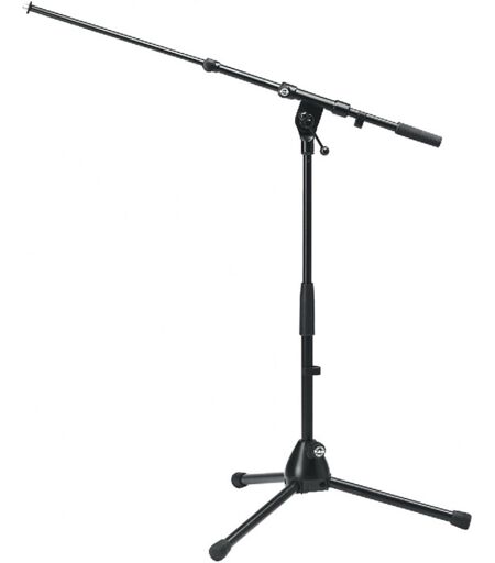 Halbhohes Mikrofon-Bodenstativ: mit längenverstellbarem, schwenkbarem Ausleger und trittschallgedämpften Klappfüßen. Gewinde 9 mm (⅜").Mattschwarz lackiert, Auslegerlänge einstellbar: 47-77 cm, Einstellbare Höhe: 43-64 cm, Gewicht: 2,05 kg, Technische Daten: Art: Mikrofon-Bodenstativ, Farbe: Schwarz, Einstellbare Höhe: 43-64 cm, Länge: Ausleger 47-77 cm, Staumaß: 10 x 56 cm, Gewicht: 2,05 kg, Besonderheit: Gewinde 9 mm (⅜") ...