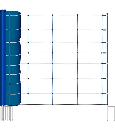 AKO TitanNet Premium Plus 50m Schafnetz 108cm, 14 verst. Pfähle, 2 Spitz, starre Streben, blau-weiß