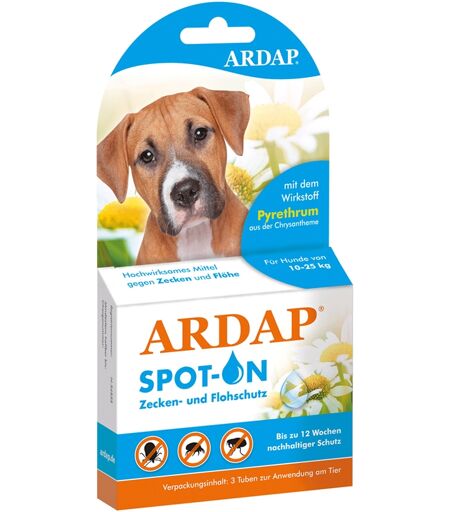 ARDAP® Spot-On Zecken- und Flohschutz für mittelgroße Hunde von 10-25kg - 3 Tuben je 2,5ml