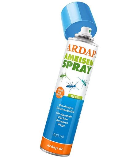 Anwendungsgebiet von Ardap Repell AmeisensprayArdap Repell Ameisenspray ist ein Universalpräparat zur Abwehr von Ameisen und anderem Ungeziefer.Das ARDAP Repell Ameisenspray mit den Wirkstoffen Pyrethrum aus der Chrysantheme und Geraniol ist ein repellierendes Hilfsmittel zur Abwehr von Ameisen. Ideal auch zur Abwehr von anderem Ungeziefer wie Fliegen, Flöhe, Spinnen, Silberfischchen und Milben in Haushalt, Gewerbe und Tierhaltung. Wirkstoffe / Inhaltsstoffe / ZutatenArdap Repell Ameisenspray enthält:Chrysanthemum-cinerariaefolium-Extrakt aus offenen und reifen Tanacetumcinerariifolium-Blüten, mit Kohlenwasserstoff-Lösungsmittel gewonnen 2,0 g/kg (CAS 89997-63-7), Geraniol 0,5 g/kg (CAS 106-24-1)DosierungAnwendungsempfehlung von Ardap Repell Ameisenspray:Zuverlässiger Schutz: Hält Ameisen und anderes Ungeziefer zuverlässig fern – ideal für gezielte Anwendungen in Innenräumen.Anwendungshinweise: Vor Gebrauch gut schütteln. Bevorzugte Aufenthaltsorte von Ungeziefer aus ca. zwei Metern Entfernung eine Sekunde lang besprühen (entspricht ca. 1,5 g).Sparsame Dosierung: Nicht bis zur sichtbaren Nässe oder Tropfenbildung sprühen. Nicht großflächig anwenden.Sicherheitsmaßnahmen: Aquarien und Terrarien vor der Anwendung abdecken. Katzen während des Sprühvorgangs fernhalten. Empfindliche und polierte Flächen vorab vorsichtig testen.Einsatz bei Wespen: Nur bei akuter Bedrohung oder durch Fachpersonal anwenden. Nicht gegen geschützte Arten wie Kreisel-, Knopfhorn-, Keulhornblatt- oder Dolchwespen einsetzen.Nach der Anwendung: Für gute Belüftung sorgen. Rückstände trocknen fleckenlos ein und lassen sich bei Bedarf mit handelsüblichen Allzweckreinigern entfernen.HinweiseExtrem entzündbares Aerosol. Behälter steht unter Druck: Kann bei Erwärmung bersten. Verursacht Hautreizungen. Verursacht schwere Augenreizung. Kann Schläfrigkeit und Benommenheit verursachen. Sehr giftig für Wasserorganismen, mit langfristiger Wirkung. Ist ärztlicher Rat erfor ...