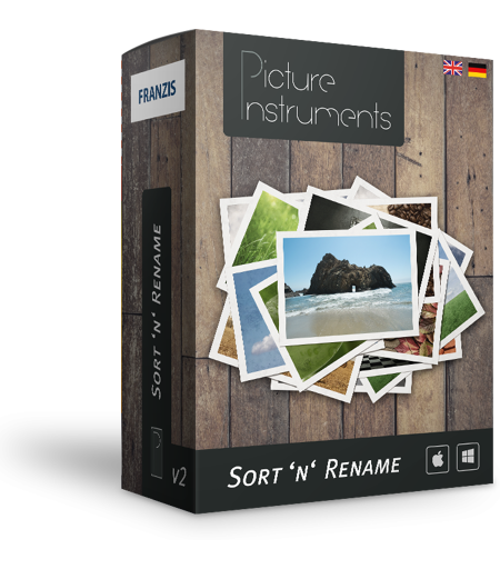 Finden Sie Ihre Fotos jetzt schneller! Sort ´n´ Rename bietet die flexibelste Lösung zum Umbenennen von Dateien. Neben individuellem Text, Nummerierungen in beliebigen Intervallen sowie Bestandteilen des Originaldateinamen, stehen auch zahlreiche Datums- und Exif-Tags, wie Aufnahmedatum, Blende, Verschlusszeit und viele mehr, für die Dateibenennung zur Verfügung. Damit nicht genug. Auch unterschiedliche Schreibweisen der gleichen Dateiendung lassen sich korrigieren und einzelne Buchstaben oder Zeichenketten können automatisch ersetzt werden. Du hast von einem Ereignis mehrere Bilder aus verschiedenen Kameras? Mit Sort ´n´ Rename sind diese schnell in die richtige Reihenfolge gebracht und neu nummeriert. Du möchtest deinen Kunden ein paar Fotos schicken und die Schönsten an den Anfang sortieren? Mit Sort ´n´ Rename kannst du in der Thumbnail-Leiste via Drag and Drop die B... ...