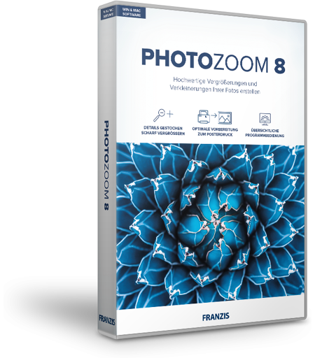 Perfekte Bildvergrößerungen dank preisgekrönter Technologie Diese Software eignet sich perfekt für Bildvergrößerungen in DTP, großtechnische Bildverarbeitung, großformatiges Drucken, Digitalfotografie, Onlinepublikationen oder um Fotos aus dem Internet qualitativ aufzuwerten. Wenn Sie mehrere Gruppenfotos aufgenommen haben, können Sie mit PhotoZoom 8 den besten Bildausschnitt finden und weitere Optimierungen vornehmen, um das perfekte Ergebnis zu erhalten. Oder Sie vergrößeren Ihre Aufnahmen auf Posterformat, ganz ohne Qualitätsverlust. + NEU: Optimierte Voreinstellungen, passend für verschiedenste Fotos und Grafiken + NEU: Perfekt zur Verbesserung der Qualität Ihrer Fotos (auch wenn Sie nicht die Größe ändern) + NEU: EXR-Format unterstützt + NEU: Verbesserte RAW-Bildunterstützung + Leistungsstarkes Beschneiden + Multiprozessor-Unterstützung: enorme Geschwindigkeitsverbesserungen + Bi... ...