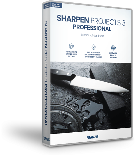 Das ist neu in SHARPEN projects 3 professional NEU! intelligente Maskierungsfunktion zum Schutz bestimmte Bildbereiche NEU! „Pro Infinity“ & „Oversampling“ - überarbeitete Methoden zur Bildanalyse und Unschärfekorrektur NEU! Konturenmodus zur optimalen Ermittlung der Unschärfeverteilungsfunktion NEU! 8 digitale Farbfilter zur selektiven Simulation von farbigen Fotofiltern NEU! Verbesserte Kratzer- und Sensorfehlerkorrektur in 5 Qualitätsmodi NEU! Skaliertes Speichern von Bildern NEU! Erweiterungen im Selektiven Zeichnen NEU! Notizfunktion in der Undo-Timeline NEU! 10 neue, zusätzliche Presets NEU! Verbesserte Performance Nur in der professional-Version Alle Funktionen, alle Werkzeuge, alle Features - die SHARPEN projects 3 professional zeigt, was technisch möglich ist. Ideal für Profis und ambitionierte Hobbyfotografen! PRO: Inklusive Plug-in für Adobe® Lightroom® Cl... ...