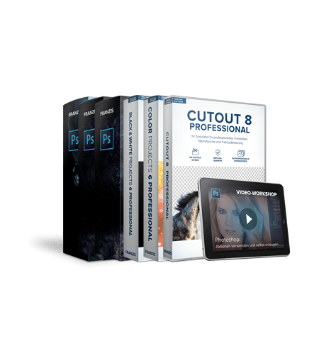 Das Paket zur Allround-Bildbearbeitung Mit diesem Bundle erhalten Sie ausgewählte Spezial-Software und Presets für alle Motivarten, die Ihnen die Arbeit abnehmen Bilder ausdruckstärker zu machen. Unsere zahlreichen Aktionen ermöglichen Ihnen, Photoshop wie die Profis zu nutzen. Natürlich erhalten Sie ebenso das nötige Wissen, um Aktionen zu verändern, selbst zu erstellen und so Ihre Visionen zu verwirklichen. CutOut 8 professional - Nur für Windows! Motive aus Bildern perfekt ausschneiden, präzise auf andere Hintergründe montieren oder störende Bildelemente mit einem Mausklick entfernen: Das alles kann CutOut 8 professional. -Drei individuelle Matting-Methoden für verschiedenartige Motive -Innen-Außen-Matting mit hochpräziser vollautomatischer Konturenerkennung -Perfekte Fotomontagen leicht erstellen -Direkt in Photoshop als Plug-In anwendbar -100 professionelle Hintergrün... ...