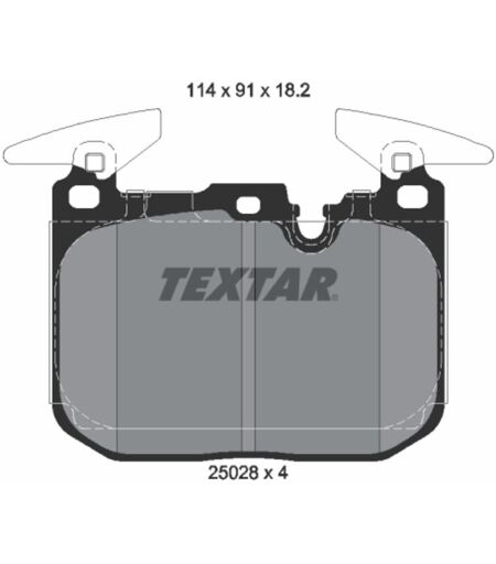 Anzahl der Beläge: 4. Breite [mm]: 114,8. Bremssystem: Brembo. Dicke [mm]: 18,2. Hersteller: TEXTAR. Herstellernummer: 2502801. Höhe [mm]: 91,2. Index: 2502801. Montage Achse: Vorne. Produktart: Bremsbelagsatz. Typprüfung: ECE R90 APPROVED. Vorbereitung für Verschleißkontakt: Ja. WVA-Nummer: 25028. ...