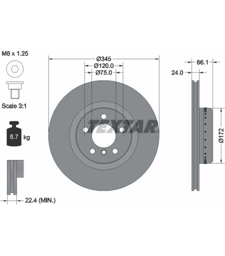 TEXTAR Bremsscheibe PRO+ Ergänzungsartikel/Ergänzende Info 2:mit Schrauben Höhe [mm]:66,1 mm Ergänzungsartikel/Ergänzende Info 2:ohne Radbefestigungsbolzen Ergänzungsartikel/Ergänzende Info 2:ohne Radnabe Bearbeitung:hochgekohlt Zentrierungsdurchmesser [mm]:75 mm Anzahl der Schrauben:2 Bremsscheibendicke [mm]:24 mm Bohrbild/Lochzahl:05/06 Lochkreis-Ø [mm]:120 mm Bremsscheibenart:Bremsscheibe zweiteilig Radbolzenbohrung-Ø [mm]:16,5 mm Bremsscheibenart:Innenbelüftet Verpackungshöhe [cm]:15,5 cm Innendurchmesser [mm]:160,8 mm Mindestdicke [mm]:22,4 mm Oberfläche:beschichtet Verpackungslänge [cm]:37,8 cm Ergänzungsartikel/Ergänzende Info 2:ohne Radlager Außendurchmesser [mm]:345 mm Verpackungsbreite [cm]:37,8 cm Gewicht [kg]:8,7 kgPreis pro Stück! Bremsscheiben müssen immer paarweise gewechselt werden! , u.a. für BMW 1 (F20), 1995 cm³, 211 PS (155 kW), 3/2012 bis 6/2019, KBA-Nr: 0005BIHBMW 1 (F20), 1995 cm³, 163 PS (120 kW), 7/2011 bis 6/2019, KBA-Nr: 0005BGOBMW 1 (F20), 1598 cm³, 116 PS (85 kW), 3/2012 bis 2/2015, KBA-Nr: 0005BIGBMW 1 (F20), 1995 cm³, 136 PS (100 kW), 7/2011 bis 6/2019, KBA-Nr: 0005BGMBMW 1 (F20), 1997 cm³, 218 PS (160 kW), 3/2012 bis 11/2017, KBA-Nr: 0005BIEBMW 1 (F20), 1598 cm³, 136 PS (100 kW), 7/2011 bis 2/2015, KBA-Nr: 0005BGLBMW 1 (F20), 1598 cm³, 170 PS (125 kW), 7/2011 bis 2/2015, KBA-Nr: 0005BGPBMW 1 (F20), 1995 cm³, 116 PS (85 kW), 7/2011 bis 2/2015, KBA-Nr: 0005BGKBMW 1 (F20), 1995 cm³, 143 PS (105 kW), 7/2011 bis 2/2015, KBA-Nr: 0005BGNBMW 1 (F20), 1995 cm³, 184 PS (135 kW), 7/2011 bis 2/2015, KBA-Nr: 0005BGQBMW 3 (F30, F80), 1995 cm³, 184 PS (135 kW), 11/2011 bis 3/2016, KBA-Nr: 0005BHKBMW 3 (F30, F80), 1995 cm³, 163 PS (120 kW), 11/2011 bis 10/2018, KBA-Nr: 0005BHJBMW 1 (F20), 1995 cm³, 218 PS (160 kW), 3/2012 bis 2/2015, KBA-Nr: 0005BIFBMW 3 (F30, F80), 1997 cm³, 184 PS (135 kW), 3/2012 bis 10/2018, KBA-Nr: 0005BIKBMW 3 (F30, F80), 1995 cm³, 116 PS (85 kW), 3/2012 bis 10/2018, KBA-Nr: 0005BIIBMW 3 (F30, F80), 1995 cm³, 143 PS (105 kW), 3/2012 bis 6/2015, KBA-Nr: 0005BIJBMW 4 (F32, F82), 1997 cm³, 184 PS (135 kW), 11/2013 bis 2/2017, KBA-Nr: 0005BSRBMW 1 (F21), 1995 cm³, 143 PS (105 kW), ab 5/2013, KBA-Nr: 0005BQLBMW 3 (F30, F80), 1995 cm³, 136 PS (100 kW), 3/2012 bis 10/2018, KBA-Nr: 0005BIRBMW 4 (F32, F82), 1995 cm³, 184 PS (135 kW), 11/2013 bis 2/2015, KBA-Nr: 0005BSVBMW 4 (F32, F82), 1997 cm³, 184 PS (135 kW), 11/2013 bis 2/2016, KBA-Nr: 0005BSTBMW 3 (F31), 1997 cm³, 184 PS (135 kW), 11/2012 bis 6/2015, KBA-Nr: 0005BLABMW 3 (F31), 1995 cm³, 143 PS (105 kW), 11/2012 bis 6/2015, KBA-Nr: 0005BMNBMW 1 (F20), 1598 cm³, 102 PS (75 kW), 7/2012 bis 2/2015, KBA-Nr: 0005BLQBMW 1 (F20), 2979 cm³, 320 PS (235 kW), 7/2012 bis 2/2015, KBA-Nr: 0005BLRBMW 1 (F20), 2979 cm³, 320 PS (235 kW), 11/2012 bis 2/2015, KBA-Nr: 0005BMFBMW 1 (F20), 1598 cm³, 95 PS (70 kW), 11/2012 bis 6/2015, KBA-Nr: 0005BMGBMW 1 (F20), 1995 cm³, 184 PS (135 kW), 11/2012 bis 2/2015, KBA-Nr: 0005BMHBMW 3 (F30, F80), 1598 cm³, 136 PS (100 kW), 7/2012 bis 8... ...