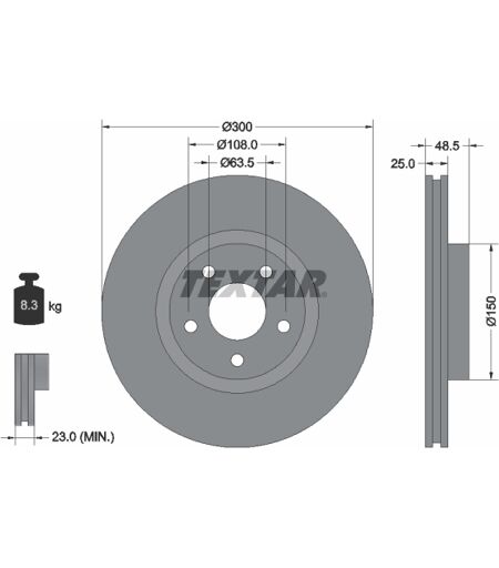 TEXTAR Bremsscheibe PRO+ Ergänzungsartikel/Ergänzende Info 2:ohne Radbefestigungsbolzen Ergänzungsartikel/Ergänzende Info 2:ohne Radnabe Bearbeitung:hochgekohlt Höhe [mm]:48,5 mm Zentrierungsdurchmesser [mm]:63,5 mm Bohrbild/Lochzahl:05/05 Radbolzenbohrung-Ø [mm]:13,8 mm Verpackungsbreite [cm]:30,8 cm Lochkreis-Ø [mm]:108 mm Gewicht [kg]:8,3 kg Verpackungslänge [cm]:30,8 cm Bremsscheibenart:Innenbelüftet Bremsscheibendicke [mm]:25 mm Innendurchmesser [mm]:140 mm Außendurchmesser [mm]:300 mm Oberfläche:beschichtet Mindestdicke [mm]:23 mm Ergänzungsartikel/Ergänzende Info 2:ohne Radlager Verpackungshöhe [cm]:12,7 cmPreis pro Stück! Bremsscheiben müssen immer paarweise gewechselt werden! , u.a. für Ford C-Max II (DXA/CB7, DXA/CEU), 1596 cm³, 125 PS (92 kW), ab 12/2010, KBA-Nr: 8566AUGFord C-Max II (DXA/CB7, DXA/CEU), 1596 cm³, 105 PS (77 kW), ab 12/2010, KBA-Nr: 8566AUFFord C-Max II (DXA/CB7, DXA/CEU), 1596 cm³, 150 PS (110 kW), ab 12/2010, KBA-Nr: 8566AUOFord C-Max II (DXA/CB7, DXA/CEU), 1596 cm³, 182 PS (134 kW), ab 12/2010, KBA-Nr: 8566AUPFord Grand C-Max (DXA/CB7, DXA/CEU), 1596 cm³, 105 PS (77 kW), ab 12/2010, KBA-Nr: 8566AUBFord Grand C-Max (DXA/CB7, DXA/CEU), 1596 cm³, 125 PS (92 kW), ab 12/2010, KBA-Nr: 8566AUCFord Grand C-Max (DXA/CB7, DXA/CEU), 1596 cm³, 150 PS (110 kW), ab 12/2010, KBA-Nr: 8566AUJFord Grand C-Max (DXA/CB7, DXA/CEU), 1596 cm³, 182 PS (134 kW), ab 12/2010, KBA-Nr: 8566AUKFord Grand C-Max (DXA/CB7, DXA/CEU), 1560 cm³, 95 PS (70 kW), ab 12/2010, KBA-Nr: 8566AUEFord Grand C-Max (DXA/CB7, DXA/CEU), 1560 cm³, 115 PS (85 kW), ab 12/2010, KBA-Nr: 8566AUDFord Grand C-Max (DXA/CB7, DXA/CEU), 1997 cm³, 163 PS (120 kW), ab 12/2010, KBA-Nr: 8566AULVolvo C30 (533), 1560 cm³, 115 PS (84 kW), 10/2010 bis 12/2012, KBA-Nr: 9101AOAVolvo C30 (533), 1984 cm³, 150 PS (110 kW), 10/2010 bis 12/2012, KBA-Nr: 9101AOFVolvo C30 (533), 1984 cm³, 177 PS (130 kW), 10/2010 bis 12/2012, KBA-Nr: 9101ANZVolvo C70 II (542), 1984 cm³, 150 PS (110 kW), 10/2010 bis 6/2013, KBA-Nr: 9101ADNVolvo C70 II (542), 1984 cm³, 177 PS (130 kW), 10/2010 bis 6/2013, KBA-Nr: 9101ADMFord Grand C-Max (DXA/CB7, DXA/CEU), 1997 cm³, 115 PS (85 kW), ab 2/2011, KBA-Nr: 8566AUUFord Grand C-Max (DXA/CB7, DXA/CEU), 1997 cm³, 140 PS (103 kW), ab 2/2011, KBA-Nr: 8566AUMFord C-Max II (DXA/CB7, DXA/CEU), 1997 cm³, 163 PS (120 kW), ab 12/2010, KBA-Nr: 8566AUQFord C-Max II (DXA/CB7, DXA/CEU), 1997 cm³, 115 PS (85 kW), ab 2/2011, KBA-Nr: 8566AUTFord C-Max II (DXA/CB7, DXA/CEU), 1997 cm³, 140 PS (103 kW), ab 4/2010, KBA-Nr: 8566AUMVolvo S40 II (544), 1984 cm³, 150 PS (110 kW), 10/2010 bis 12/2012, KBA-Nr: 9101AOGVolvo S40 II (544), 1984 cm³, 177 PS (130 kW), 10/2010 bis 12/2012, KBA-Nr: 9101AOBVolvo S40 II (544), 1560 cm³, 115 PS (84 kW), 10/2010 bis 12/2012, KBA-Nr: 9101AOCVolvo V50 (545), 1984 cm³, 177 PS (130 kW), 10/2010 bis 12/2012, KBA-Nr: 9101AODVolvo V50 (545), 1984 cm³, 150 PS (110 kW), 10/2010 bis 12/2012, KBA-Nr: 9101AOHFord Focus III, 1596 cm³, 105 PS (77 kW), ab 7/2010, KBA-Nr:... ...