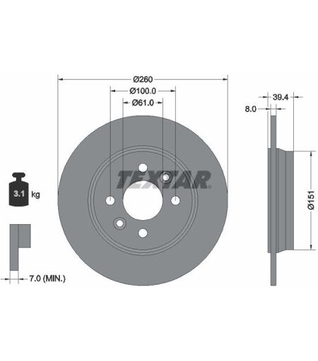TEXTAR Bremsscheibe Bremsscheibenart:Voll Gewicht [kg]:3,1 kg Bremsscheibendicke [mm]:8 mm Mindestdicke [mm]:7 mm Lochkreis-Ø [mm]:100 mm Ergänzungsartikel/Ergänzende Info 2:ohne Radbefestigungsbolzen Ergänzungsartikel/Ergänzende Info 2:ohne Radnabe Bohrbild/Lochzahl:04/06 Verpackungshöhe [cm]:10,5 cm Radbolzenbohrung-Ø [mm]:13,8 mm Außendurchmesser [mm]:260 mm Verpackungsbreite [cm]:27,8 cm Innendurchmesser [mm]:148,3 mm Höhe [mm]:39,4 mm Zentrierungsdurchmesser [mm]:61 mm Oberfläche:beschichtet Ergänzungsartikel/Ergänzende Info 2:ohne Radlager Verpackungslänge [cm]:27,8 cm , u.a. für Renault Clio V (B7), 999 cm³, 101 PS (74 kW), ab 6/2019, KBA-Nr: 3333BLQRenault Clio V (B7), 1332 cm³, 131 PS (96 kW), ab 6/2019, KBA-Nr: 3333BLPRenault Clio V (B7), 1461 cm³, 86 PS (63 kW), ab 6/2019, KBA-Nr: 3333BLORenault Clio V (B7), 1461 cm³, 116 PS (85 kW), ab 6/2019, KBA-Nr: 3333BLNRenault Clio V (B7), 999 cm³, 72 PS (53 kW), ab 6/2019, KBA-Nr: 3333BIHRenault Clio V (B7), 999 cm³, 65 PS (48 kW), ab 11/2019, KBA-Nr: 3333BIERenault Clio V (B7), 999 cm³, 101 PS (74 kW), ab 6/2019, KBA-Nr: 3333BNBRenault Clio V (B7), 1598 cm³, 91 PS (67 kW), ab 3/2020, KBA-Nr: 3333BNIRenault Clio V (B7), 999 cm³, 91 PS (67 kW), ab 8/2020 , OE-Nummer:HELLA:8DD355135231MINTEX:MDC3197CMXCAR:1422218JURID:563691JCCOMLINE:ADC5339NK:3139119HELLA PAGID:8DD355135231HELLA PAGID:355135231DON:PCD23482TEXTAR:98200347601BENDIX Braking:BDS2341PAGID:T1850N56476N00PAGID:56476BORG & BECK:BBD6300HELLA:355135231MOTAQUIP:LVBD2376BREMSI:CD9047VA.B.S.:18949DELPHI:BG5168CNATIONAL:NBD2542EUROBRAKE:58153139119ATE:24010801191MINTEX:MDC3197CZIMMERMANN:470541620JURID:563691JC1BREMBO:08E95811PAGID:56476NCTEXTAR:2482001347600FERODO:DDF3047CBRECO:BV6290MEYLE:16155230020PDBREMBO:08E95810 ...