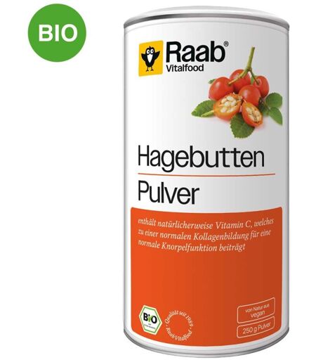 Raab Vitalfood Hagebutte Bio Pulver enthält das Beste aus den Fruchtschalen und den Kernen der