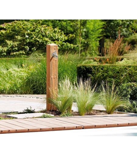 Garantia Wassersäule, Wood Farbe: Holzoptik »Light Wood« Material: Kunststoff Auslaufhahn Chrom Maße: B x H x T ca. 25 x 100 x 25 cm Inhalt: Inkl. Wasserzapfsäule, Chrom-Auslaufhahn, Steigleitung und Schlauchanschluss Gewicht: Ca. 5 kg Sonstige Hinweise: Lieferung in 1 Packstück per Postversand bis zum Haus Inselbelieferung möglich B x H x T Packstück ca. 29 cm x 25 cm x 99,5 cm Garantiegeber: Otto Graf GmbH Herstellergarantie: 5 Jahre Garantieumfang: gesamtes Produkt Räumlicher Geltungsbereich: Deutschland und Österreich Hersteller-Artikel-Nummer: 356031 Hersteller: Otto Graf GmbH, Carl-Zeiss-Str. 2-6, 79331, Teningen, Deutschland mail@graf.info Wasserzapfsäule inkl. Chrom-AuslaufhahnIn naturgetreuer HolzoptikUV- und witterungsbestäbndigEinfache Montage100% recycelbarPremium Qualität MADE IN GERMANYEin Produkt der Marke Garantia5 Jahre Herstellergarantie ...