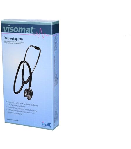 Visomat® Stethoskop Pro Patientenfreundlicher Kälteschutzring Ohrbügel mit innen liegender Feder Das Visomat Stethoskop Pro von Uebe Medical ist die perfekte Wahl für präzise und zuverlässige Diagnosen. Ausgestattet mit einem hochwertigen Doppelkopf-Bruststück aus Edelstahl und einem praktischen Kälteschutzring, ermöglicht es eine komfortable und genaue Untersuchung von Herz- und Lungengeräuschen. Die exzellente Akustik sorgt für eine klare Übertragung selbst feinster Geräusche, was es ideal für den professionellen Einsatz im medizinischen Bereich, aber auch für den privaten Gebrauch macht. Dieses Stethoskop kombiniert hohe Funktionalität mit langlebiger Qualität und ist somit das ideale Hilfsmittel für Ärzte, Pfleger und alle, die Wert auf exakte Diagnosen legen. Profitieren Sie von einer langlebigen Lösung, die Ihre täglichen medizinischen Untersuchungen vereinfacht! ...