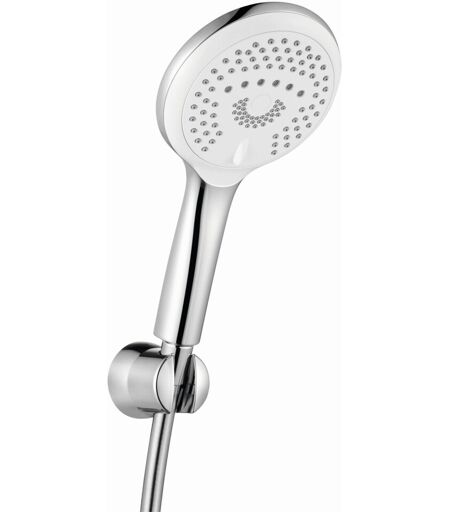 Wannen-Brause-Set Hersteller KLUDI GmbH & Co. KG KUDI FRESHLINE Art. Nr. 6795005-00 Ausführung wie folgt: Wannen-Brause-Set mit Handbrause RL 3S DN 15 / PN 5 aus Kunststoff verchromt mit drei Strahlarten: Volumen- / Booster- / Smooth-Strahl mit starrem Wand-Brausehalter aus Kunststoff verchromt Kalkschnellreinigung Anschluss G 1/2 Durchflussmenge: Volumen-: 18,8 l/min bei 3 bar Booster-: 15 l/min bei 3 bar Smooth-Strahl: 10 l/min bei 3 bar KLUDI SUPARAFLEX SILVER Brauseschlauch G 1/2 x G 1/2 x 1250 mm kunststoffummantelt mit Metalleffekt und konischen Muttern mit Befestigungsmaterial mit Schmutzfangsieb Abmessungen: Ausladung Wand-Brausehalter: 62 mm Ausladung Brause: 175 mm, Höhe: 263 mm ...