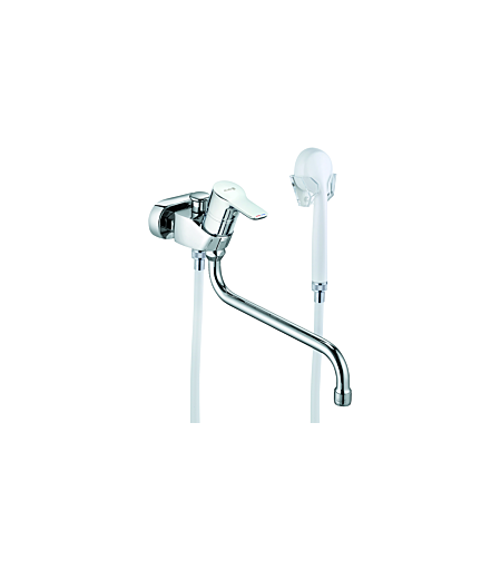 Kludi Pure&easy Wannen- und Brausearmatur 375920565geschlossener HebelKeramik-Kartusche mit Heißwasserbegrenzungschwenkbarer Auslauf 250 mmStrahlregler M 24 x 1/BDurchflussklasse B/Aautomatische Umstellung Brause/WanneBrauseabgang G 1/2eigensicher gegen RückfließenS-AnschlüsseTele-Handbrause DN 15 - weißKunststoffschlauch weiß G 1/2 x G 1/2 x 1250 mmTele-Wandhalter transparent ...