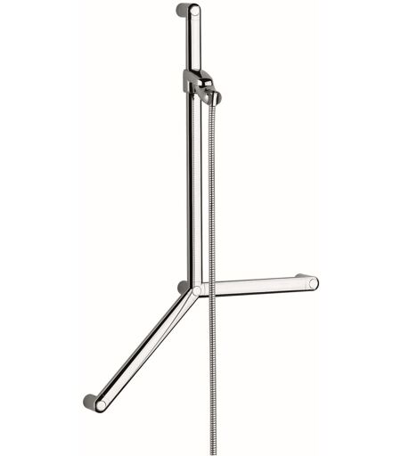 Brausestangengarnitur, Hersteller Typ KLUDI GmbH & Co. KG KLUDI SIRENA CARE Barrierefreie Brausestange Art. Nr. 6150205-00, DN 15, aus Messing / Kunststoff, stufenlos verstellbarer Gleitschieber vertikal / Horizontal verstellbar, Länge in mm 900, rechteckige Brausestange mit integrierten Haltegriffen (Grifflängen 250 mm und 300 mm Winkel 90 Grad und 45 Grad links und rechts verwendbar durch umstecken des mittleren Wandhalters, mit 50 mm Wandabstand mit Distanzstücken, mit Befestigungsmaterial, mit SUPARAFLEX-Schlauch mit Abknickschutz, verdrehsicher, mit konischen Muttern aus Messing verchromt G 1/2 x G 1/2 x 1600 mm, aus Kunststoff mit Metalloptik, PN 5 ...