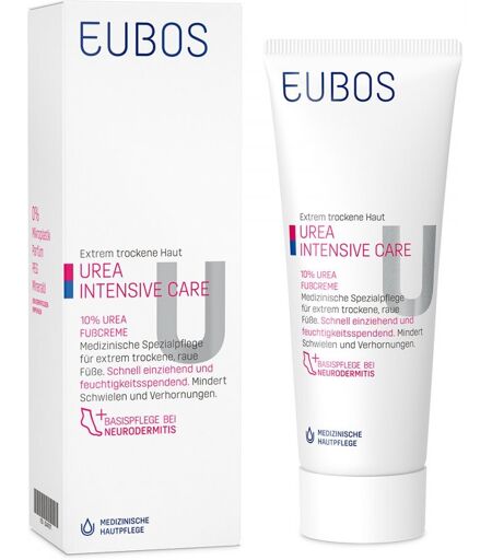 Anwendungsgebiet von Eubos Trockene Haut Urea 10% FusscremeEubos Trockene Haut Urea 10% Fusscreme ist ein medizinisches Pflegeprodukt für extrem trockene Haut. Die Wirkstoffkombination verbessert den Hautzustand spürbar und hilft, vor Verhornung und Schwielen zu bewahren. 10% UREA und 5% Glycerin erhöhen die Hydrationsfähigkeit, helfen beim Lösen von Hautschuppen, bewahren vor