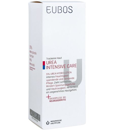 Anwendungsgebiet von Eubos Trockene Haut Urea 5% Hydro LotionBesonders im Winter leiden viele Menschen unter trockener Haut. Gegen das Austrocknen und Spannen hilft die Eubos Trockene Haut Urea 5% Hydro Lotion. Die medizinische Hautpflege für eine geschmeidige, lebendige Haut ist besonders schnell einziehend und versorgt die Haut mit der notwendigen Feuchtigkeit.Wirkungsweise von Eubos Trockene Haut Urea 5% Hydro LotionDamit Ihre Haut optimal versorgt ist, geht die Eubos Trockene Haut Urea 5% Hydro Lotion besonders auf die Bedürfnisse Ihrer Haut ein. Die Eubos Trockene Haut Urea 5% Hydro Lotion ist ein medizinisches Körperpflegemittel, das die Funktionen der Haut wie die Schutzfunktion, Reizwahrnehmung und Atmungsfunktion unterstützt. Bei Artikeln, die zu der medizinischen Körperpflege zählen, wird in der Regel auf hautreizende Inhaltsstoffe verzichtet.Wirkstoffe / Inhaltsstoffe / Zutaten1 ml Eubos Trockene Haut Urea 5% Hydro Lotion enthält: Harnstoff 50mg Dioctylether, Cyclometicon, Mandelöl, mittelkettige Triglyceride, Glycerol, Allantoin, (RS)-Octan-1,2-diol, Milchsäure, gereinigtes Wasser, Cetylstearylalkohol, Cetylalkohol, Glycerolmonostearat, Citronensäure, Cetearyl glucosid, Dimeticon, Hexan-1,2-diol, Hexadecylphosphat Kaliumsalz, 4-Anissäure, Xanthan gummi.GegenanzeigenBei bekannter Überempfindlichkeit gegen einen der Inhaltsstoffe sollte das Produkt nicht verwendet werden.DosierungAnwendungsempfehlung von Eubos Trockene Haut Urea 5% Hydro Lotion:Für die Anwendung der Eubos Trockene Haut Urea 5% Hydro Lotion folgen Sie den Hinweisen auf der Packungsbeilage. Eubos Trockene Haut Urea 5% Hydro Lotion können in Ihrer Versandapotheke www.juvalis.de erworben werden. ...