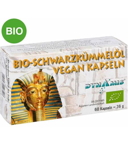 Anwendungsgebiet von Dynamis Ägyptisches Schwarzkümmelöl Bio vegan Kapseln Ägyptische BIO-Schwarzkümmelöl-Kapseln Vegan in naturreiner Premium-QualitätDynamis Ägyptisches Schwarzkümmelöl Bio Vegan (Nigella sativa) von DYNAMIS enthalten hochwertiges Schwarzkümmel-Öl in BIO-Qualität – in praktischer Kapselform.Das Schwarzkümmelöl in den veganen Kapseln stammt aus kontrolliert biologischem Anbau in den fruchtbaren Oasen Ägyptens. Schwarzkümmel wird seit über 3000 Jahren in der altägyptischen Tradition geschätzt – schon in den Gräbern der Pharaonen fanden sich Schwarzkümmel-Samen. Das sonnenreiche Wüstenklima entlang des Nils lässt besonders ölreiche und aromatische Samen gedeihen – die perfekte Grundlage für ein außergewöhnliches hochwertiges Schwarzkümmel-Öl in Kapselform.DYNAMIS BIO-Schwarzkümmelöl-Kapseln Vegan verbinden diese überlieferte Weisheit mit moderner, schonender Verarbeitung. Das enthaltene Öl zeichnet sich durch einen hohen Thymochinon-Gehalt aus und macht die Schwarzkümmel-Kapseln besonders wertvoll. Schonend kaltgepresst in der Allgäuer ÖlmühleDie BIO-Schwarzkümmelsamen für das Öl stammen aus kontrolliert biologischem Anbau in Ägypten. Nach der Ernte gelangen sie direkt nach Deutschland, wo sie in der BIO- und Demeter-zertifizierten Allgäuer Ölmühle in kleinen Chargen besonders schonend kaltgepresst werden. Dieser Prozess erfolgt ohne Hitze, chemische Zusätze oder Aromaverstärker. So bleiben der intensive, charakteristische Geschmack, die goldbraune Farbe und die naturreine Qualität vollständig erhalten. Das Öl wird in eine pflanzliche Kapselhülle eingeschlossen, die eine bequeme und saubere Anwendung auch unterwegs oder auf Reisen ermöglicht. Das ausgewogene Zusammenspiel von mehrfach ungesättigten Fettsäuren, B-Vitaminen, Beta-Carotin, Biotin sowie wertvollen Spurenelementen wie Zink und Selen macht diese kaltgepressten Schwarzkümmelöl-Kapseln zu einem hochwertigen Produkt – ...