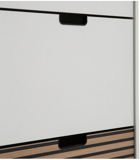 2er-Schuhschrank »Ryker«, matt weiß Farbe: Matt weiß Untere Klappe Akustikplattenoptik Griffausschnitt und Füße schwarz Material: Melaminharzbeschichtete Spanplatte. Füße Kunststoff. Griffe und Beschläge Metall Maße: B x H x T ca. 59,8 x 124 x 19,5 cm Klappen je ca. 38 x 55,9 cm Höhe Füße ca. 4 cm, bis 8 mm höhenverstellbar Inhalt: Inkl. Montageanleitung Gewicht: Ca. 22 kg Gebrauchsanweisung: Mit einem feuchten, nicht nassen Tuch reinigen Pflegeprodukte sind nicht notwendig Warnhinweise: Beiliegende Montageanleitung vollständig beachten Sonstige Hinweise: Artikel wird zerlegt geliefert Lieferung in 1 Packstück Anlieferung frei Haus Keine Inselbelieferung B x H x T Packstück ca. 40,x 9,5 x 128 cm Hersteller-Artikel-Nummer: 160032 Hersteller: W. Schildmeyer GmbH & Co. KG, Sachsenweg 55, 32547 Bad Oeynhausen E-Mail: info@w-schildmeyer.de 3 Klappen mit 1-reihigen SchuhtrommelnPlatz für ca. 9 Paar Schuhe bis Schuhgröße 44/45, Schuhlänge ca. 33 cmPlatzsparend durch geringe TiefeKlappenbeschlag mit Einrastung zum sicheren Öffnen und SchließenFüße höhenverstellbar um Unebenheiten im Boden auszugleichenWandbefestigung erforderlichVielseitig mit weiteren Elementen der Serie kombinierbarEinfache Montage mit verständlicher AufbauanleitungMADE IN GERMANY ...