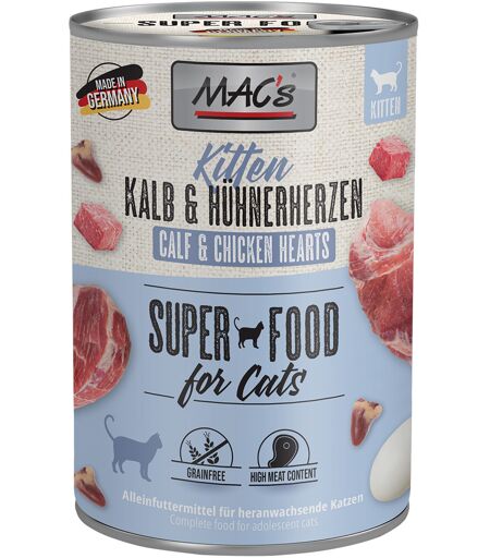 6x400g MAC's Cat Kätzchen Kalb & Hühnerherzen Katzenfutter nass