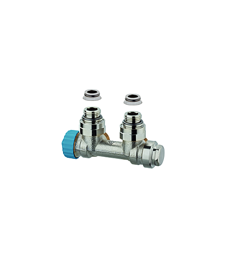 Heimeier Multilux Ventil-Einrohrsystem 3855-02.000das Multilux Thermostat-Ventilunterteil wird für den Anschluss an Heizkörper mit unterem Zweipunktanschluss wie z.B. BadheizkörperUniversalheizkörper etc. verwendetfür Heizkörper mit unterem ZweipunktanschlussMittenabstand der Anschlüsse 50 mm (+/-10 mm)Gehäuse aus korrosionsbeständigementzinkungsfreiem Rotgussvernickeltmit Niro-Stahlspindel und doppelter O-Ring-Abdichtungäußerer O-Ring ohne Entleeren der Anlage auswechselbarVor- und Rücklauf absperrbarseparater Regulierkegel für reproduzierbare VoreinstellungAnschluss für Entleerungs- und FülleinrichtungVor- und Rücklaufanschluss sind beliebig wählbarAnschluss Außengewinde G 3/4in Verbindung mit Klemmverschraubungen für Kunststoff-Kupfer-Präzisionsstahl- oder Verbundrohrzulässige Betriebstemperatur TB 120 °Cmit Verkleidung TB 90 °Czulässiger Betriebsüberdruck PB 10 barAnschlussstücke für Heizkörperanschlüsse R 1/2 der G 3/4Toleranzausgleich +/-10 mm durch spezielle Überwurfmuttern und flexibles Flachdichtungs-System für spannungsfreie MontageAnschluss für Thermostat-Köpfe und Stellantriebe M 30 x 15 ...