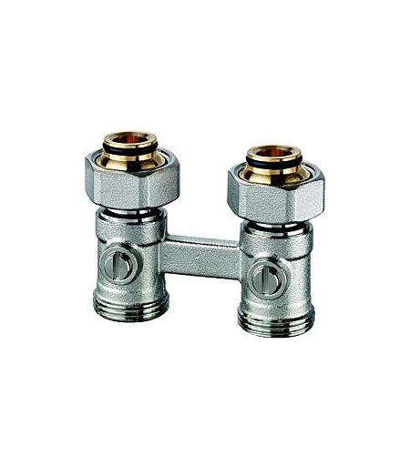 Heimeier Vekotrim Anschlussverschraubung 0566-50.000Anschlussverschraubung mit Absperrkugelhähnenfür die Montage an Ventilheizkörpern mit Anschluss Rp 1/2 Innengewinde und G 3/4 Außengewindefür Zweirohr-HeizungsanlagenFunktion AbsperrenDN 15PN 10max. Betriebstemperatur 120 °Cmin. Betriebstemperatur 5 °CWerkstoffe Ventilgehäuse MessingO-Ringe EPDMFlachdichtungen EPDMKugelabdichtungen PTFEOberflächenbehandlung Ventilgehäuse und Anschlussverschraubung vernickeltAnschlussstücke für Heizkörperanschlüsse R 1/2 oder G 3/4Rohranschluss: das Gehäuse mit Außengewinde G 3/4 ist ausgelegt für den Anschluss mit Klemmverschraubungen an Kunststoff-Kupfer-Präzisionsstahl- oder Verbundrohr ...