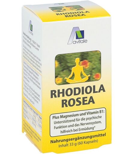 Anwendungsgebiet von Rhodiola Rosea Kapseln 200 mgRhodiola Rosea Kapseln 200 mg ist Nahrungsergänzungsmittel mit Extrakten aus der Rhodiola Rosea Pflanze, sinnvoll kombiniert mit den wichtigen Nährstoffen Magnesium und Vitamin B1 zur Steigerung des allgemeinen Wohlbefindens.Wirkungsweise von Rhodiola Rosea Kapseln 200 mgDie Inhaltsstoffe Magnesium und Vitamin B1 unterstützen das Nervensystem und gesunde psychische Funktionen. Außerdem sind sie hilfreich bei Müdigkeit und Ermüdung.Wirkstoffe / Inhaltsstoffe / ZutatenZutaten von Rhodiola Rosea Kapseln 200 mg: Magnesiumcarbonat, Rhodiola-Rosea-Extrakt, Maltodextrin, Kapselhülle: Hydroxypropylmethylcellulose, Vitamin B1, Trennmittel: Magnesiumsalze der Speisefettsäuren 1 Kapsel enthält: 200mg Rhodiola-Rosea-Extrakt (bei 3% Rosavin, 1% Salidroside) 60mg Magnesium (16 % NRV*) 1,4mg Vitamin B1 (127% NRV*) NRV* = % des Nährstoffbezugswerts (NRV=nutrient reference value) gemäß EU-LebensmittelinformationsverordnungGegenanzeigenBei bekannter Überempfindlichkeit gegenüber einem der oben genannten Inhaltsstoffe sollte dieses Produkt nicht angewendet werden.Dosierung Verzehrempfehlung von Rhodiola Rosea Kapseln 200 mg: 1 Kapsel täglich mit einem großen Glas Wasser zu einer Mahlzeit einnehmenHinweiseDie empfohlene tägliche Verzehrmenge darf nicht überschritten werden. Nahrungsergänzungsmittel sind kein Ersatz für eine gesunde und ausgewogene Ernährung und sollten außerhalb der Reichweite von Kindern aufbewahrt werden. Rhodiola Rosea Kapseln 200 mg können in Ihrer Versandapotheke www.juvalis.de erworben werden. ...