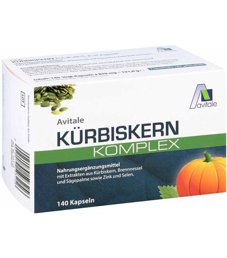 Anwendungsgebiet von Kürbiskern Komplex KapselnKürbiskern Komplex Kapseln ist ein Nahrungsergänzungsmittel. Kürbiskern Komplex Kapseln enthält eine wertvolle Kombination mit Extrakten aus Kürbiskern, Brennnessel und Sägepalme sowie Zink und Selen. Durch die verwendete Vegi-Kapsel aus Cellulose ist dieses Produkt frei von tierischen Bestandteilen.Wirkungsweise von Kürbiskern Komplex KapselnDer in Kürbiskern Komplex Kapseln enthaltene Kürbiskern-Extrakt hat einen hohen Anteil an ungesättigten und mehrfach ungesättigten Fettsäuren, viel Vitamin E, Vitamin B1, B2 und B6 und ist reich an Eisen, Kalium, Kalzium, Magnesium, Mangan, Phosphor, Selen und Zink. Dies wirkt sich positiv auf die Senkung des Cholesterinspiegels aus und hilft der Vorbeugung von Herz-Kreislauf-Beschwerden. Genau wie der Kürbiskernextrakt ist auch der Sägepalmen-Extrakt in Kürbiskern Komplex Kapseln geeignet, Vergrößerungen der Prostata günstig zu beeinflussen. In der Brennessel ist viel Provitamin A enthalten, viele Mineralsalze und auch Eisen. Zink und Selen sind essentielle Spurenelemente, die Ihre körpereigene Abwehr stärken. Wirkstoffe / Inhaltsstoffe / ZutatenZutaten von Kürbiskern Komplex Kapseln: Kürbiskern-Extrakt, Brennnessel-Extrakt, Trägerstoff: Maltodextrin und Siliziumdioxid, Kapselhülle: Hydroxypropylmethylcellulose, Sägepalme-Extrakt, Trennmittel: Tri-Calciumphosphat und Magnesiumsalze von Speisefettsäuren, Zink (Zinkcitrat, Inulin, Selen (Natriumselenat) Zusammensetzung von Kürbiskern Komplex Kapseln: 2 Kapseln(Tagesdosis) enthalten: 1000 mg Kürbiskern-Extrakt, 300 mg Brennessel-Extrakt, 100 mg Sägepalme-Extrakt, 10 mg Zink (100% RDA*) sowie 84 µg Selen (152,7% RDA*) *RDA = empfohlene Tagesdosis nach NährwertverordnungGegenanzeigenBei bekannter Überempfindlichkeit gegenüber einem der oben genannten Inhaltsstoffe sollte das Produkt nicht verwendet werden.DosierungNehmen Sie jeweils morgens und abends 1 Ka ...