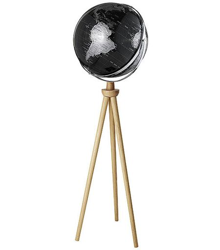 SPUTNIK war der Name der ersten zehn sowjetischen Satelliten, die zwischen 1957 und 1961 ins All aufstiegen. Große Aufmerksamkeit zieht auch der gleichnamige Globus auf sich. Die Weltkugel wird durch ihren imposanten Durchmesser von 430 Millimeter sowie durch ihr handwerklich gearbeitetes Eichenholzgestell geprägt. Er steht in fünf verschiedenen Varianten zur Auswahl. Ein schönes Detail ist außerdem das verchromte Metallgestell mit seinen zwei Achsen. Ø 43 cm Durchmesser und Standfuß, dreibeiniges Eichenholzgestell, Gesamthöhe 1,40m, zwei verchromte, bewegliche Metallachsen Farbe: glänzend schwarz/silber ...