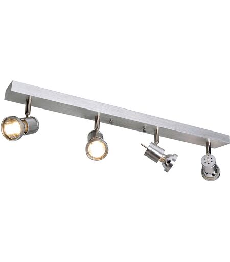 Die ASTO 4 Wand-und Deckenleuchte ist aus Aluminium gefertigt und verfügbar in gebürsteter Oberflächenlackierung. Die gewünschten GU10 Halogen- oder Energiesparleuchtmittel werden direkt in die dafür vorgesehene GU10 Hochvoltfassung eingedreht und können optional mit einem im Lieferumfang der Leuchte enthaltenen Zierring versehen werden. ASTO 3 Wand- und Deckenleuchte ist fertig für den direkten Anschluss an 230V Netzspannung.Technische Daten: Produktname: ASTO, Farbe: aluminium, Material: Aluminium, Leistung: 75 W, Leuchtmittel: QPAR51, Fassung: GU10, Anzahl Fassungen: 4, Schutzklasse: I, IP Code: IP 20, Montage: Aufbau, Montagedetails: Decke, Form: rund, Länge: 63 cm, Breite: 6.5 cm, Höhe: 10.5 cm, Vertikaler Schwenkbereich: 90 °, Horizontaler Drehbereich: 330 °, Schwenkbereich: 90 °, Horizontaler Drehbereich: 330 °, Primäre Nennspannung: 220-240V ~50/60Hz, Nettogewicht: 0.86 kg ...