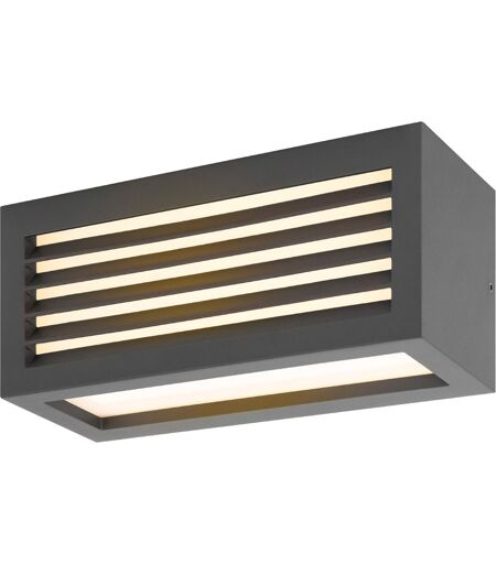 Einflammige LED Wandleuchte BOX-L bestehend aus lackiertem Aluminium und satiniertem Acryl welches die drei Lichtauslässe abdeckt. Durch Schutzart IP44 für den Außenbereich geeignet. Der elektrische Anschluss der in mehreren Farbversionen verfügbaren Leuchte erfolgt direkt an 230V Netzspannung.Technische Daten: Produktname: BOX-L, Farbe: anthrazit, Material: Aluminium, Leistung: 19 W, Lumen/Watt: 31.58 lm/W, Lichtstrom: 600 lm, Lichtfarbtemperatur: 3000 Kelvin, Schutzklasse: I, IP Code: IP 54, Montage: Aufbau, Montagedetails: Wand, Form: quadratisch, Breite: 25 cm, Höhe: 11 cm, Lebensdauer: 30000 h, Schlagfestigkeitsklasse: IK05, Schlagfestigkeit: 0.7 joule, Primäre Nennspannung: 100-277V ~50/60Hz, Sekundär Strom / Sekundär Spannung: 500mA, Umgebungstemperatur: -20 - 40 °C, Nettogewicht: 1.31 kg, Bemessungswert Lichtausbeute: 31.58 lm/W, Gewichteter Verbrauch: 19 kWh/1.000h, LXXBXX Daten: L70B50 ...