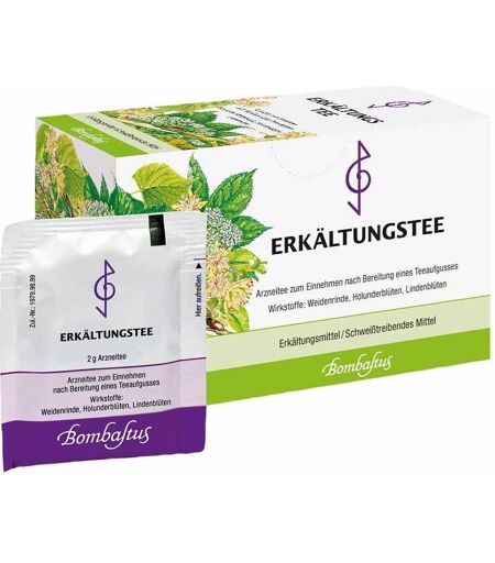 Anwendungsgebiet von ERKÄLTUNGSTEE BOMBASTUSERKÄLTUNGSTEE BOMBASTUS als ein pflanzliches Mittel gegen Erkältungskrankheiten, können Sie bei fieberhaften Erkältungskrankheiten, bei denen eine Schwitzkur erwünscht ist, einnehmen.Wirkungsweise von ERKÄLTUNGSTEE BOMBASTUSERKÄLTUNGSTEE BOMBASTUS ist ein Arzneitee zum Einnehmen nach Bereitung eines Teeaufgusses. Dabei wirkt ERKÄLTUNGSTEE BOMBASTUS lindern auf Ihre Erkältung, in dem ERKÄLTUNGSTEE BOMBASTUS wie eine Schwitzkur wirkt und den Stoffwechsel ankurbelt.Wirkstoffe / Inhaltsstoffe / Zutaten1 Teebeutel von ERKÄLTUNGSTEE BOMBASTUS enthält: Weidenrinde, Holunderblüten, Lindenblüten, Hagebuttenschalen, SüßholzwurzelGegenanzeigenBei bekannter Überempfindlichkeit gegenüber einem der oben genannten Inhaltsstoffe sollte das Produkt nicht verwendet werden. DosierungAnwendungsempfehlung von ERKÄLTUNGSTEE BOMBASTUS: Soweit nicht anders verordnet, wird mehrmals täglich 1 Tasse des wie folgt frisch bereiteten Teeaufgusses getrunken: 1–2 Aufgussbeutel Erkältungstee werden mit siedendem Wasser (ca. 150ml) übergossen und bedeckt etwa 10 Minuten ziehen gelassen. ERKÄLTUNGSTEE BOMBASTUS können in Ihrer Versandapotheke www.juvalis.de erworben werden. ...