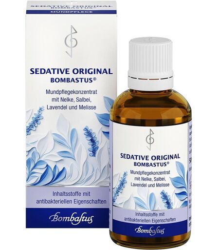 Anwendungsgebiet von Sedative Original Bombastus KonzentratSedative Original Bombastus Konzentrat enthält Pflanzenextrakte aus Nelke, Salbei, Lavendel und Melisse. Diese Inhaltsstoffe verfügen von Natur aus über antibakterielle und beruhigende Eigenschaften. Sie helfen dabei, empfindliche Bereiche der Mundschleimhaut zu schützen und infolgedessen Irritationen vorzubeugen. Die Anwendung von Sedative Original Bombastus® unterstützt so auf sanfte Weise den Erhalt eines gesunden Mundraumes.Wirkstoffe / Inhaltsstoffe / ZutatenSedative Original Bombastus Konzentrat enthält: Alcohol, Aqua, Aroma*, Mentha piperita oil, Cinnamomum cassia bark extract, Eugenia caryophyllus bud extract, Cinchona succirubra bark extract, Citrus limon peel oil, Pelargonium graveolens flower oil, Salvia officinalis oil, Lavandula oil/extract, Eugenia caryophyllus oil, Vanillin, Rose flower oil/extract, Melissa officinalis flower/leaf/stem oil, Alpha-Terpinene*, BetaCaryophyllene*, Camphor*, Carvone*, Cinnamal*, Citral*, Citronellol*, Coumarin*,Eugenol*, Eugenyl acetate*, Farnesol*, Geraniol*, Geranyl acetate*, Limonene*, Linalool*, Linalyl acetate*, Menthol*, Pinene*, Terpineol*, Terpinolene* *aus natürlichen Rohstoffen wie, ätherischen Ölen, und/oder naturidentischen RohstoffenGegenanzeigenBei bekannter Überempfindlichkeit gegenüber einem der oben genannten Inhaltsstoffe sollte dieses Produkt nicht angewendet werden. DosierungAnwendungsempfehlung von Sedative Original Bombastus Konzentrat:
