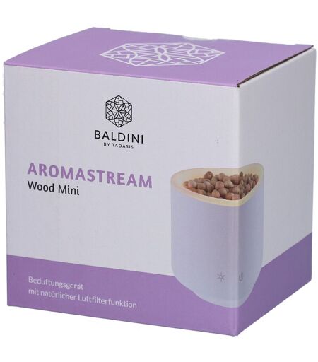 Baldini AromaStream Wood Mini - weiß Der AromaStream Wood Mini im modernen Weißton ist schlichtes Dekoelement und natürlicher Duftbegleiter in einem. Ganz ohne Wasser bringt er mittels Ventilation den Lieblingsduft in die Luft und sorgt im Handumdrehen für eine angenehme Duft-Atmosphäre, die zum Entspannen und Wohlfühlen einlädt. Einfach wenige Tropfen des liebsten Naturduftes auf die Holzkugeln träufeln, AromaStream Wood einschalten und genießen. Während des Betriebs leuchtet ein warmes Licht, das je nach persönlicher Vorliebe auch ausgeschaltet werden kann. Im optionalen Silent-Modus ist die Vernebelung besonders leise. Hinweis: Zur natürlichen Raumbeduftung ist ein Duftöl der Marke TAOASIS oder Baldini erforderlich, welches nicht im Lieferumfang enthalten ist. Optimal bis 30 m² Inklusive Netzkabel. Anwendung Wenige Tropfen Duftöl auf die Holzkugeln träufeln und den AromaStream Wood einschalten. ...