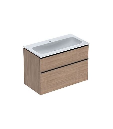 Geberit Icon Waschtisch mit Unterschrank 90 cm 502333JH1 Waschtisch-Set 90x63x48cm, weiß/KeraTect, Korpus Eiche, Griff lava matt