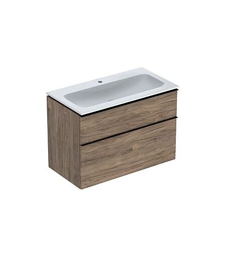 Geberit iCon Waschtisch mit Unterschrank 90 cm 502333JR1 Waschtisch-Set 90x63x48cm, weiß/KeraTect, Korpus nussbaum, Griff lava matt